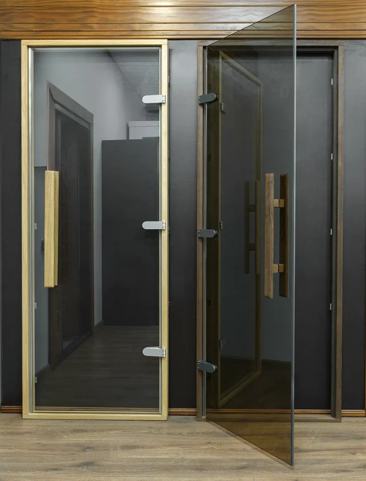 В производстве дверей используются жаропрочное закаленное стекло, толщиной 8 мм.