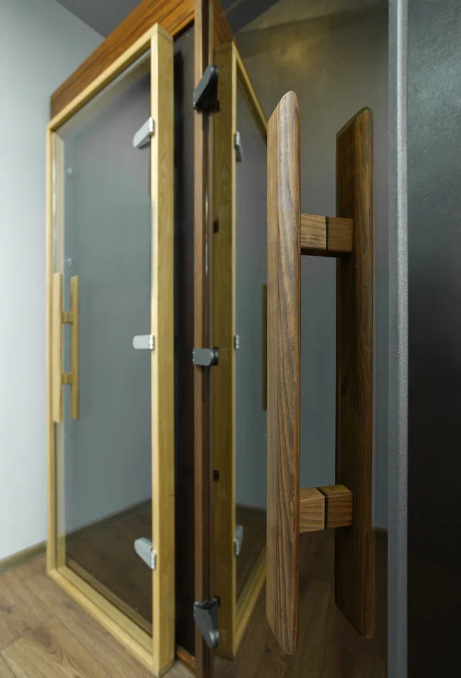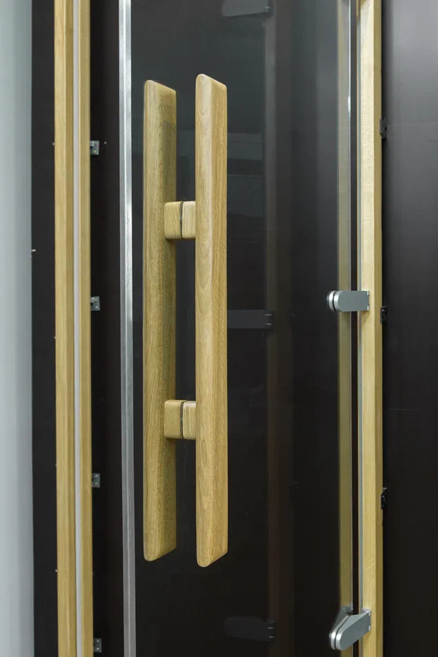 Дверной блок изготавливается из массива натурального дерева – термоясень, дуб.